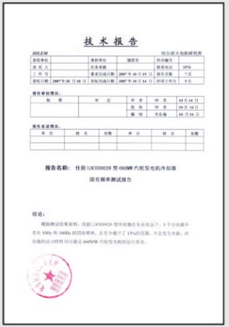 39萬機組氫冷卻器固有頻率