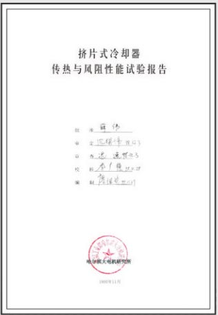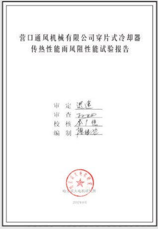 穿片式冷卻器性能試驗報告