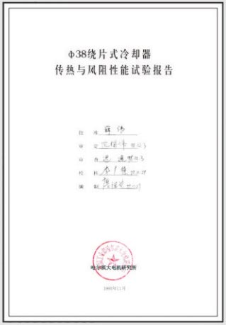繞簧式冷卻器性能試驗報告